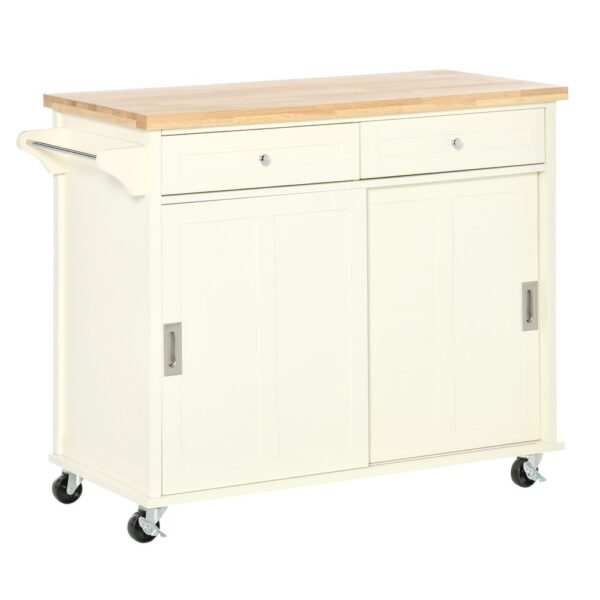 Homcom Carrito De Cocina Multifuncional Con Ruedas Puertas Correderas Y Cajones One Size