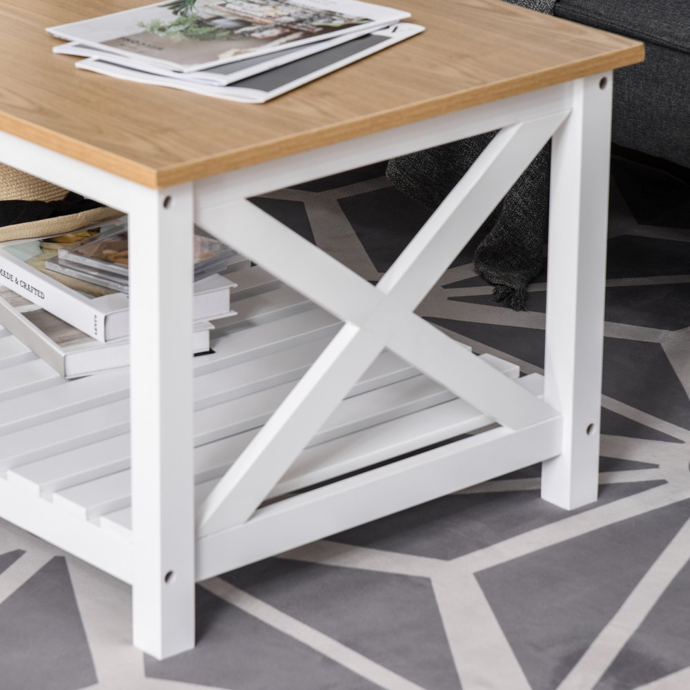 Homcom Mesa De Centro Para Salón Mesa De Café Con Estante De Almacenamiento Inferior Para Dormitorio 116x60x48 Cm Natural Y Blanco One Size Multicolour
