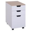 ¿Demasiados documentos u objetos encima de la mesa de tu oficina u hogar? Esta cajonera móvil es una genial solución para este problema.Este archivador cuenta con tres cajones espaciosos para guardar y ordenar lo que no necesites en ese momento.Además; incorpora 4 ruedas giratorias para una mayor movilidad.Las dos ruedas delanteras incluyen frenos; para fijarla donde quieras.Estructura de tablero de partículas con revestimiento de melanina; muy resistente y duradero.¡Con esta cajonera mantendrás tu oficina u hogar ordenado!.Características:- Amplio espacio de almacenamiento:Esta cómoda consta de tres cajones para guardar; libros; apuntes; ropa….- Diseño moderno y elegante que encaja perfectamente en el hogar o la oficina.- Cuenta con cuatro ruedas giratorias para poderlo mover con facilidad.Las delanteras incluyen frenos para fijarlo donde quieras.- Hecho de tablero de MDF con revestimiento de melanina.Fácil de limpiar y resistente.- Empuñadura cóncava:diseño exclusivo y práctico; fácil de abrir.- Diseño actual y elegante de color blanco y madera natural que combina en cualquier sitio.- Incluye instrucciones de montaje y accesorios necesarios para ello.Especificaciones:- Color:Blanco.- Material:MDF.- Medidas totales:40x50x57.5cm (LxANxAL).- Medidas interiores de cada cajón:31x37x7;2 cm (LxANxAL).- Peso neto:15.5 kg.- Capacidad de carga:10 kg.- Referencia:836-048WT.