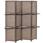 Este biombo de bambú de HOMCOM es ideal para cualquiera que necesite crear privacidad instantánea en un dormitorio o aislar un espacio.Fabricado con madera maciza; bambú y bisagras de metal; es un producto resistente ideal para un uso prolongado.Equipado con 2 estantes extraíbles en los que podrás poner plantas; marcos de fotos u otros objetos de decoración.¡Dale a tu casa un toque elegante y rústico con este separador de ambientes!.Características:- Biombo con estructura de madera maciza y bambú de diseño clásico.- Ideal para dormitorios; sala de estar; oficinas; etc.- Diseño plegable de 4 paneles; fácil de mover y almacenar.- Incluye 2 estantes extraíbles; que permiten colocar plantas; marcos de fotos y otros adornos.- Pies cuadrados con almohadillas protectoras para mayor estabilidad y mantener el separador elevado.- No requiere montaje.Especificaciones:- Color:marrón.- Material:bambú; madera de pino.- Medidas completamente extendidas:180×180 cm (LxAL).- Grosor del biombo:1;9 cm.- Medidas plegadas:45x8x180 cm(LxANxAL).- Medidas de cada panel:45×180 cm (LxAL).- Medidas de cada estante:168×20 cm (LxAN).- Altura de las patas:5 cm.- Peso máximo soportado:5 kg.- Referencia:830-312.