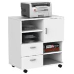 ¿Buscas un mueble auxiliar que pueda servirte para distintos usos? Si eres de esas personas que constantemente modifican la decoración de su casa; mueven los muebles de lugar… o simplemente quieres un mueble multiusos; este mueble auxiliar de HOMCOM es lo que estás buscando.Úsalo como mueble para impresora o para la TV de tu habitación o salón.Consta de 1 armario con puerta; 2 cajones; 4 estantes y tiene ruedas para poderlo mover con facilidad; para moverlo si hace falta de una sala a otra sin esfuerzo. .Características:- Diseño elegante y moderno.- Hecho de melamina aglomerada; soporta hasta 25 kg.- Mueble con amplio espacio de almacenaje compuesto por:2 cajones; 1 armario principal con puerta y 4 estantes.- 4 ruedas giratorias permiten un movimiento flexible y desplazamiento fácil.- 2 frenos integrados en dos de sus ruedas para fijar el mueble en su sitio y no se mueva.- Ideal para cocina; sala de estar; pasillo; salón; dormitorio; oficina y más .- Fácil de limpiar con un paño húmedo.- Requiere montaje.Especificaciones:- Color:blanco.- Material:Melamina aglomerada de madera.- Medidas totales:60x35x65 cm (LxANxAL).- Medidas del cajón:20;8×28;4×7;6 cm (LxANxAL).- Medidas de cada compartimento:28;3×30;9×15 cm (LxANxAL).- Referencia:02-0628.