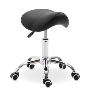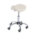 Este taburete bajo con forma de sillín es un asiento ergonómico y asegura automáticamente una sentada vertical; que alivia la columna vertebral.El taburete está equipadocon un resorte a gas cómodo; regulable en altura y rotable.El asiento acolchado es de polipiel; liso y fácil de limpiar.La base del taburete está equipado con cinco ruedas de nylon estables.El taburete práctico es ideal para uso diario en casa; en la pelucquería; salón de belleza o en oficinas.Características:- Taburete ergonomico y giratorio en forma de montura con 6 ruedas.- Ideal para uso en el hogar; en salon de peluqueria; salon de belleza; oficinas; dentista; estetica.- Asiento comodo y amplio; con acolchado grueso de espuma.- Silla taburete muy facil de limpiar; hecha de PU.- Taburetes con ruedas y altura ajustable con resorte de gas.- Ajustable en altura de 49 cm a 61 cm.- Cinco ruedas giratorias 360 grados desmontables.- Ruedas de nylon para suelos duros.Especificaciones:- Color:Beige.- Asiento:PU.- Ruedas:Nylon.- Marco:Hierro.- Cojin del asiento:Espuma.- Peso:4;2 kg.- Capacidad de carga:136 kg.- Dimensiones totales:52 x 53 x (49-61) cm (L x An x Al).- Dimensiones del asiento:35 x 36 cm (L x An).- Referencia:02-0693.