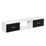 ¿Buscas un mueble de TV con amplio espacio de almacenamiento? Entonces te encantará este mueble de HOMCOM para televisores de hasta 60 pulgadas.Cuenta con una amplia encimera; dos cajones y un compartimento abierto sin fondo para facilitar la conexión de tus aparatos electrónicos a los enchufes.Este mueble es la solución perfecta para tu televisor y para satisfacer diferentes necesidades de almacenaje.Tu salón lucirá más ordenado.Características:- Mueble de TV hecho de melamina de madera; resistente y fácil de limpiar.- Recomendado para televisores de hasta 60 pulgadas.- Con un amplio espacio de almacenaje; cuenta con 2 cajones y 1 compartimento abierto.- Adecuado para el salón; comedor; dormitorio; etc.- El compartimento abierto sin fondo permite una rápida conexión a los enchufes.- Se requiere montaje.Especificaciones:- Color:blanco y negro.- Material:melamina de madera y plástico.- Medidas totales:140x30x32 cm (LxANxAL).- Medidas del compartimento central:44×29;5×24 cm (LxANxAL).- Medidas interiores del cajón:39x23x12 cm (LxANxAL).- Altura de la parte inferior al suelo:4;5 cm.- Capacidad máxima de carga:50 kg (total); 3 kg (cada cajón).- Referencia:839-093.