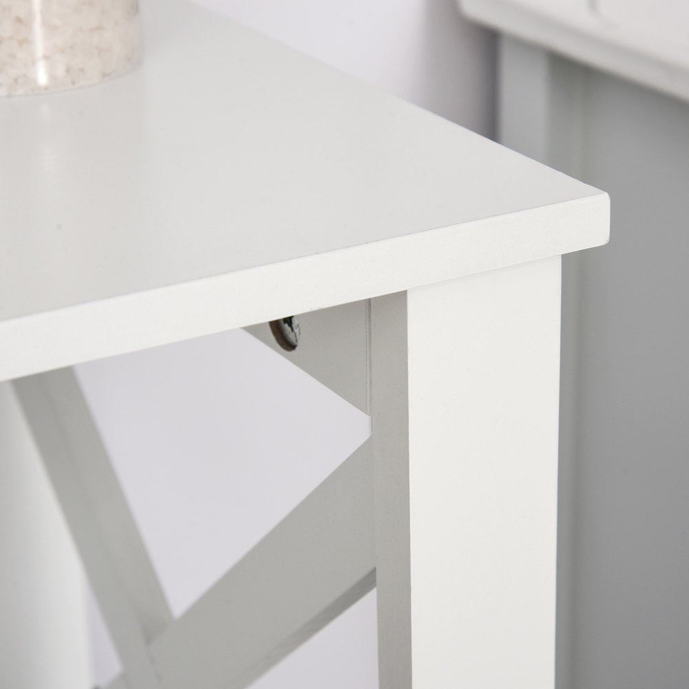 Este armario suspendido de baño de kleankin es ideal para mantener tus objetos siempre organizados. Dispone de 1 encimera; 2 estantes y 2 cajones ideales para tener siempre a mano y organizados los artículos de aseo; las toallas; el champú y otros artículos de tocador. Fabricado con MDF de grado P2 y laterales reforzados con marco en X; es un mueble resistente; elegante; moderno y funcional; que se adaptará fácilmente no solo a tu baño; sino a cualquier espacio de tu hogar. Características – Gabinete para baño perfecto para guardar toallas y artículos de aseo – Fabricado en resistente MDF de grado P2 para mayor resistencia y durabilidad – Mueble compuesto por 1 encimera; 2 estantes y 2 cajones para satisfacer tus diferentes necesidades de almacenamiento – Estructura en forma de X de los laterales que además de aportar elegancia aumenta la estabilidad – Dispone de un sistema antivuelco para fijar a la pared mayor estabilidad y seguridad – Requiere montaje Especificaciones – Color: blanco – Material: MDF – Medidas totales: 60x30x91;5 cm (LxANxAL) – Medida del estante superior: 51×28;5×33;9 cm (LxANxAL) – Medida del estante inferior: 51×28;5×30;4 cm (LxANxAL) – Medidas del interior del cajón: 22;5×24;5×10;5 cm (LxANxAL) – Carga máxima: 23 kg (total); 5 kg (cada estante); 1;5 kg (cada cajón) – Referencia: 834-276WT